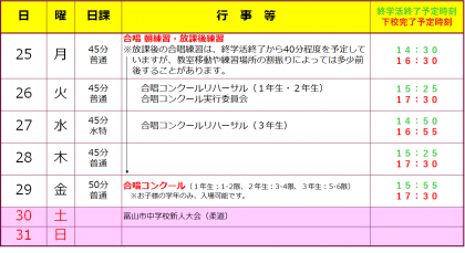 10/25(月)〜10/31(日)までの予定は、以下の通りです。