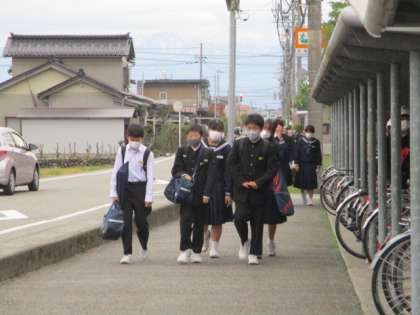 今日は曇りとなり薄暗い朝にました。ボランティア委員会の生徒がプランターの水やりを続けてくれています。今日の下校完了時間は16:30です。