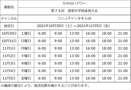第75回速星中学校体育大会の様子が上婦負ケーブルテレビで放送されます。