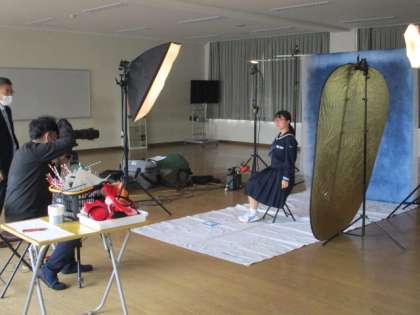 3年生はアルバム写真用の個人写真の撮影を行いました。カメラマンさんの呼びかけに応じて、みんな笑顔での撮影でした。