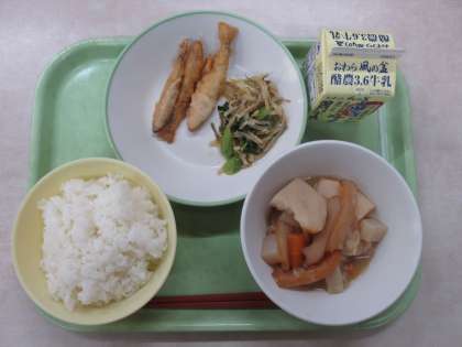 ごはん おでん 昆布和え わかさぎのフリッター 牛乳