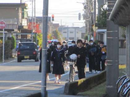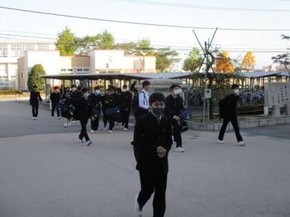 今朝は快晴でとても気持ちのよい朝でした。今日と明日は中教研学力調査を行います。今日の下校完了時間は17:30です。