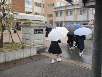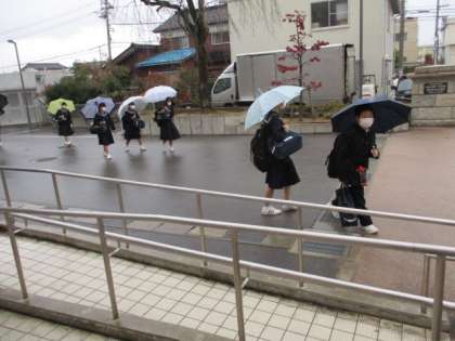 今朝は登校時、雨が降り続け気温も低くなりました。今日から教育相談週間になります。今日の下校完了時間は16:55です。