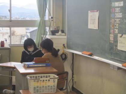 今日から16日(火)まで、教育相談期間になります。期間中は45分授業となり、放課後の時間を確保して、各担任が生徒と個別に面談を行います。写真は1年生の様子です。