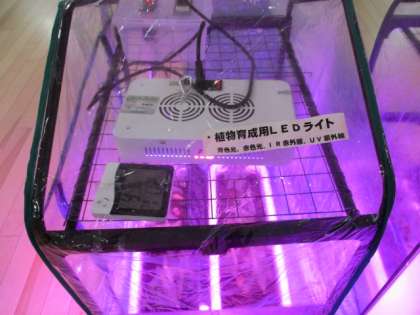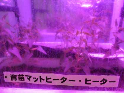 玄関からA棟に入ると青く光るものが目に入ります。速中のシンボルフラワーのブルースターをLEDの光とマットヒーターの熱で育成するための装置です。毎年冬が近づくと生徒会が中心になって育成しています。中の葉も徐々に大きくなってきました。