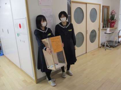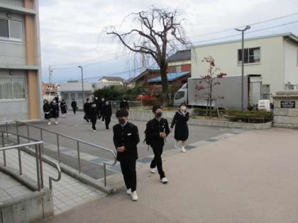 今朝は曇っていましたが、登校時、日も差し始めました。ボランティア委員会がペットボトルキャップの回収をしています。今日の下校完了時間は16:15です。