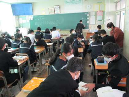 1年生4限の授業の様子です。写真は上から11H国語、12H理科、13H数学です。
