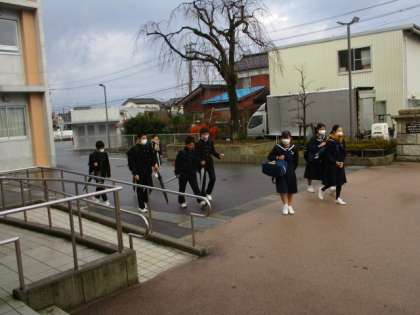 今日は登校時には雨がやんでいました。今日は期末考査最終日です。部活動が再開します。今日の下校完了時間は16:30です。