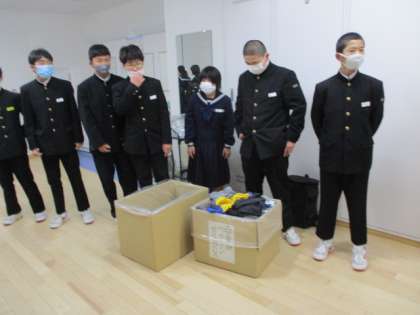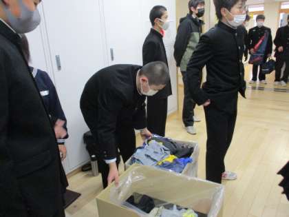 生徒会の「古着deワクチン」の取組は今日まででした。4日間で約180着ほど集まりました。ご協力ありがとうございました。