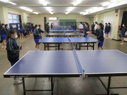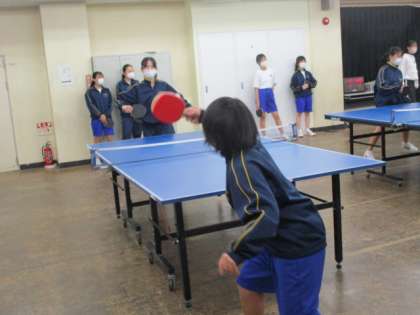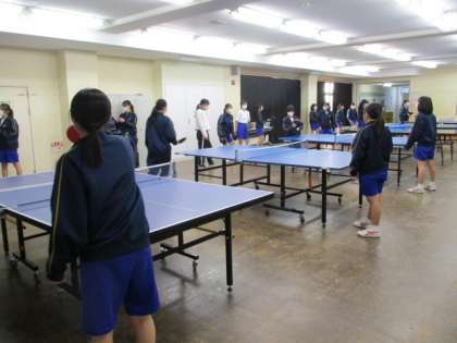 6限、28H、29Hの女子が体育で卓球を行いました。今日で6時間目ということもあり、とても長くラリーが続くペアもいました。