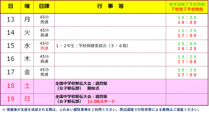 12/13(月)〜12/19(日)までの予定は、以下の通りです。