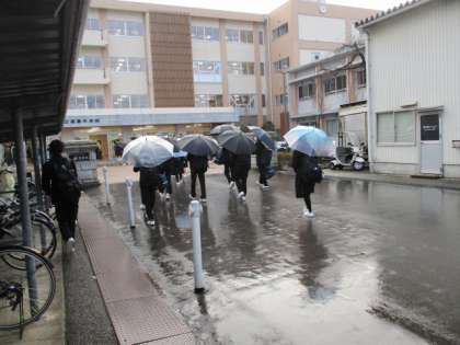 今朝は登校時、雨になりました。今日から10日まで「速中人権週間」として、いくつかの取組をします。今日の下校完了時間は16:00です。