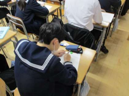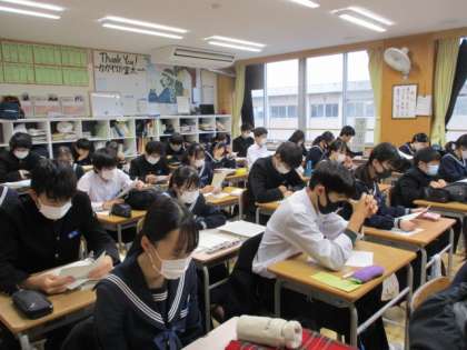 今朝の速星タイムでは中学生が書いた人権作文コンテストの優秀作品にを読みました。テーマはいじめ問題についてです。一人一人が自分たちの問題としてとらえ、読んだ感想を書きました。写真は39Hの様子です。