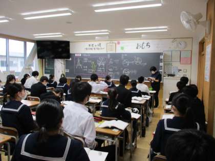 3年生3限の授業の様子です。写真は上から31H、32H男子の体育、33H数学です。