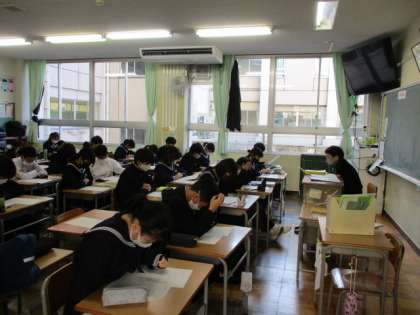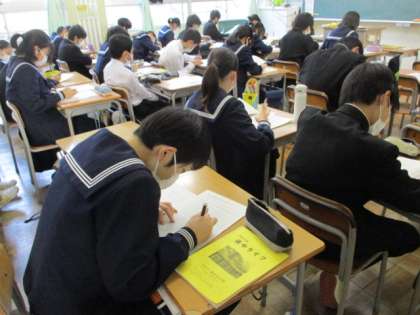 今日の速星タイムは、人権作文を読んで感想を書く2回目の取組を行いました。今日の作文は富山県内の優秀作品で「見た目で人を判断せず相手を受け入れる」という内容でした。写真は11Hの様子です。先生が範読した後、感想を書きました。