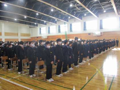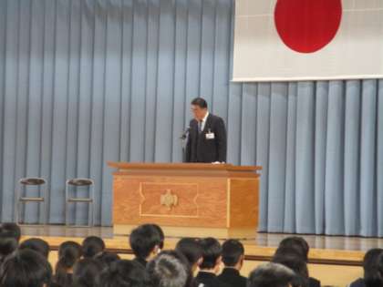 古野校長先生の式辞では、2学期の様々な速中生の活躍を振り返るとともに、冬休みに向けて「自分の命、健康は自分で守ること」や大谷選手の活躍を例に「あらためて夢や目標をもつこと」について話されました。