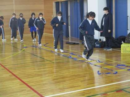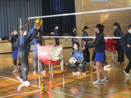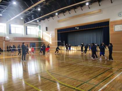 午前中の部活動の様子です。体育館ではバレーボール部とソフトボール部が活動しています。