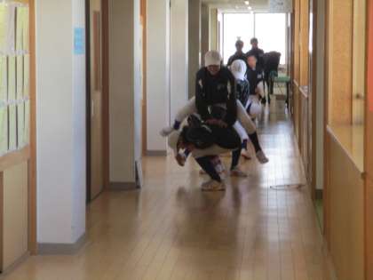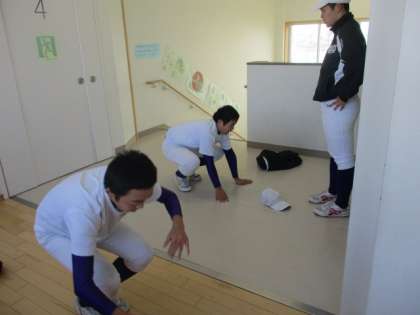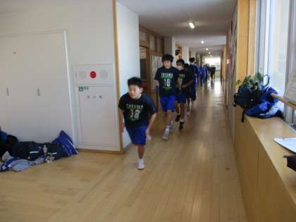 校舎内の廊下では、陸上競技部と野球部が活動しています。