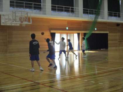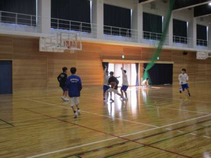 午前中の部活動の様子です。体育館ではバスケットボール部男子が活動しています。
