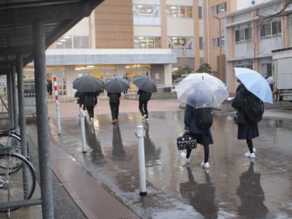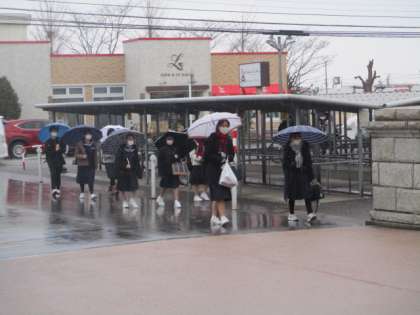 今朝は登校時、雨になりました。今日は3学期の始業式が行われます。給食・部活動はありません。今日の下校完了時間は12:15です。