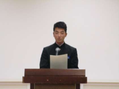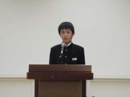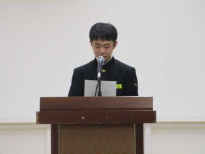 式の後に各学年の代表生徒による意見発表会を行いました。空手、吹奏楽、陸上競技など、それぞれの生徒が取り組んでいることに対するの思いや目標等を発表しました。