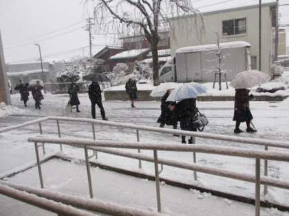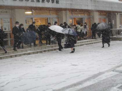 今朝は雪が降る中での登校になりました。時折、風が吹き寒さを感じます。今日の下校完了時間は17:30です。