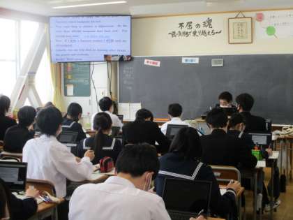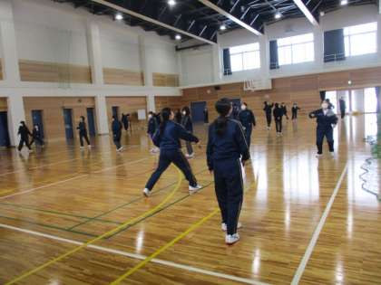 3年生4限の授業の様子です。写真は上から31・32H女子体育、31・32H男子体育、33H英語です。