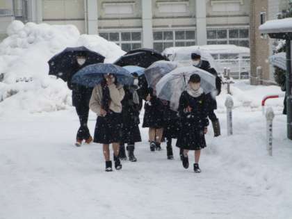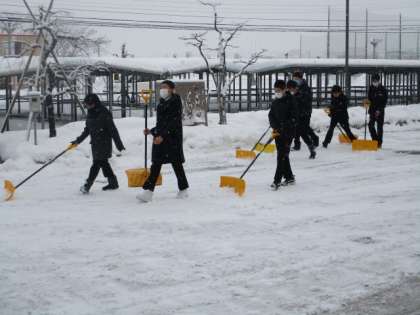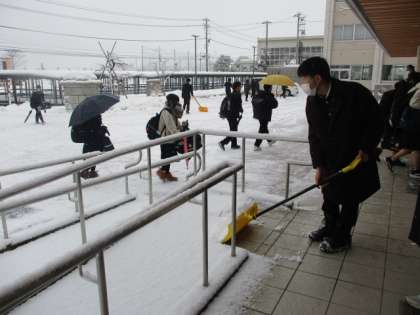 今朝も雪が降る中での登校になりました。除雪当番のクラスが活躍しています。今日の下校完了時間は17:00です。