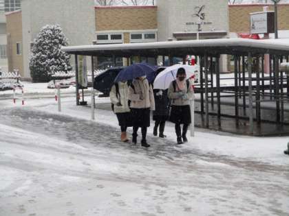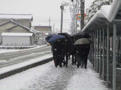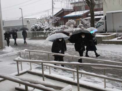 今朝は雪が降る中での登校になりました。今日から学年末考査が始まります。また、3年生は進路懇談会が行われます。今日の下校完了時間は13:15です。