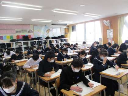 同じく31H、32H、33Hで教科は社会です。学年末考査は1、2年生が18日まで、3年生は明日まで予定されています。