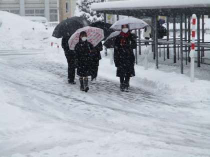 今朝は2月の下旬としては多くの積雪が見られました。久しぶりに除雪当番が活躍しました。今日の下校完了時間は15:40です。