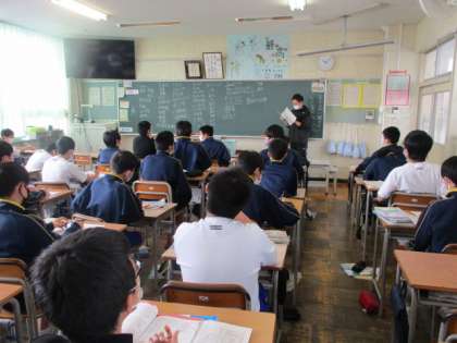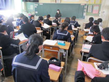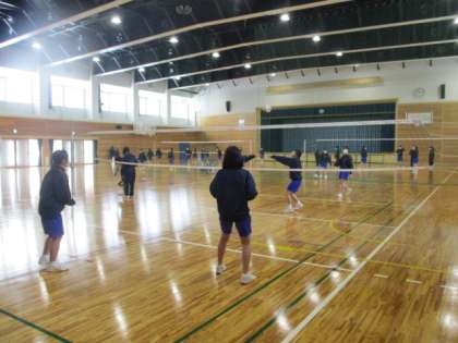 同じく17H国語、18、19H男子の保健、18、19H女子の体育です。体育館はとても寒いですが女子のバレーボールは楽しそうに取り組んでいました。