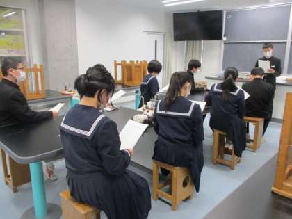 放課後、来月行われる令和4年度年度前期生徒会役員選挙の立候補者説明会が開かれました。立候補する生徒たちは選挙管理委員長の説明を真剣に聞いています。