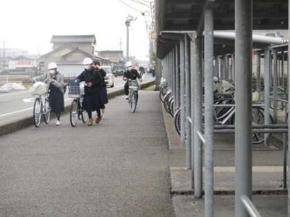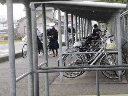 道路の雪もなくなり、自転車で通学する生徒も増えてきました。今日の下校完了時間は15:10です。