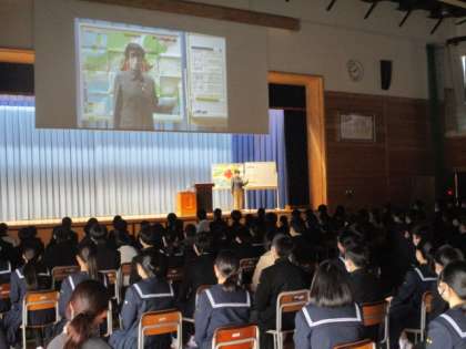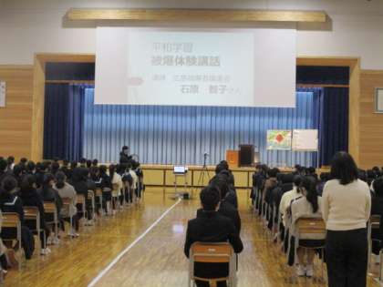 5、6限に2年生は平和学習として広島被爆者後援会の石原智子さんをお招きして「被爆体験講話」を聴きました。石原さんは、母親の胎内で被曝され、原爆症となり、核兵器の恐ろしさを体感されました。