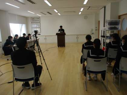 5、6限に令和4年度前期生徒会役員選挙を行いました。生徒会長1名と執行委員6名が選出されます。立会演説会は会議室から教室への配信で行いました。どの候補からも速中をよりよくしていきたいという思いが伝わってきました。