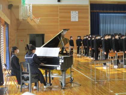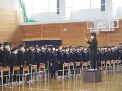 3年生は県立高校一般入試が昨日で終わり、今日は3限まで卒業式の練習を行いました。写真は歌の練習の様子です。