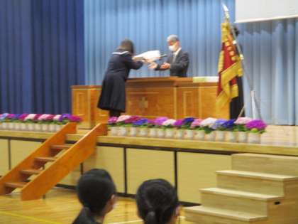 3年生は1限に同窓会入会式を行いました。入会記念品として印鑑が贈られました。吉田同窓会長のご挨拶の後、18名の同窓会役員が紹介され、代表生徒が今後、速中の同窓生としての自覚をもって過ごしていきたいと述べました。