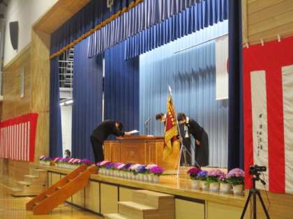 4限に受賞伝達式の後、3年生の修了式を行いました。3年生は3学年の課程を修了し、明日卒業式を迎えます。