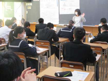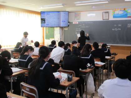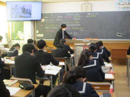 2年生、5限の授業の様子です。写真は上から22H数学、24H社会、25H社会です。