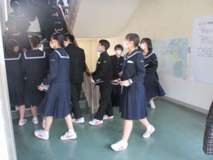 5限、3年生の教室に置かれたタブレットパソコンを2年生が、1年生の教室に移動させました。来年度は卒業生が使っていたパソコンを新入生が使います。1、2年生は自分が使っていたものを一旦持ち帰り、新年度、持ってくることになります。