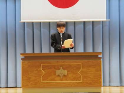 各学年の代表者が意見発表を行いました。それぞれ、この1年、頑張ってきたことを振り返りながら、来年度への前向きな思いを述べました。