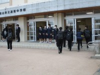 意見発表の後、修了式を行いました。式の前に校訓唱和を行いました。マスクを着用しての唱和です。