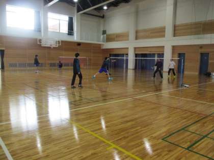今日も活発に部活動が行われています。午前中体育館では男子バドミントン部が活動していました。