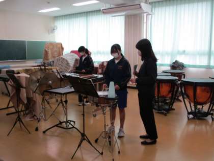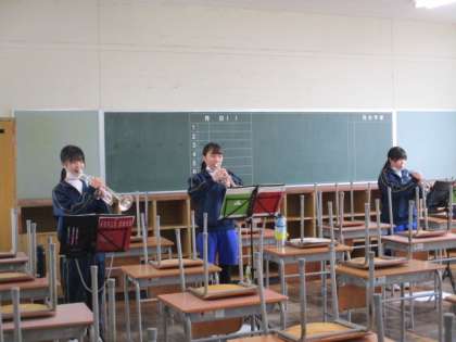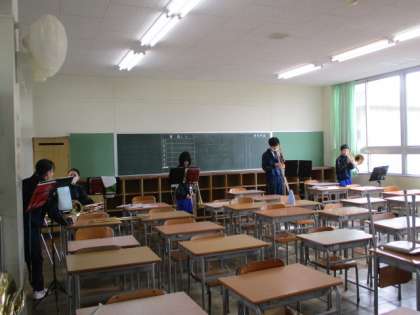 B棟の教室では吹奏楽部がパートごとに練習しています。