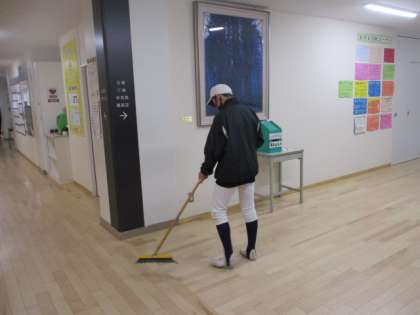 野球部は雨で練習ができないため、校舎内の清掃をしてくれていました。野球部の皆さん、ありがとう。