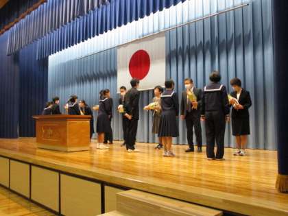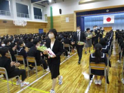 今年度、異動になった教職員の離任式を行いました。お世話になった教職員7名を全校生徒で見送りました。ありがとうございました。