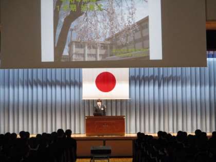 今年度着任した林校長先生は、式辞の中で、大事にしてほしい3つのこととして「生徒による自主的な企画と行動」「日常の役割を大切にする(凡事徹底)」「生きているだけで100点満点(あなたの笑顔が誰かを幸せにする)」などを話されました。