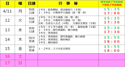4/11(月)からの予定