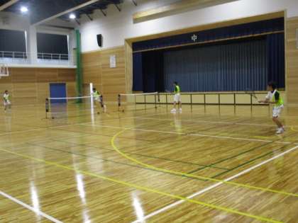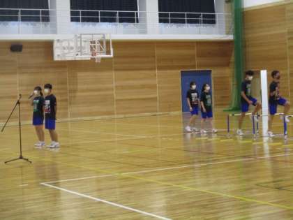 午後から1年生に向けた部活動紹介がありました。各部の代表者が実演を交えながら紹介しました。上段から陸上競技部、男子ソフトテニス部、女子ソフトテニス部です。